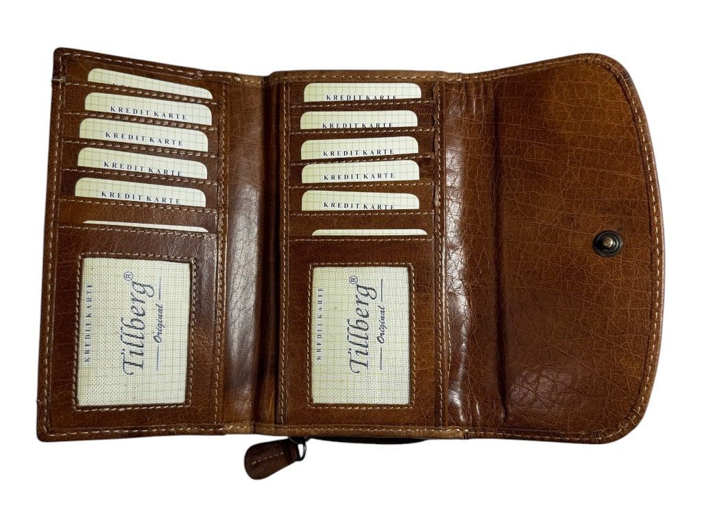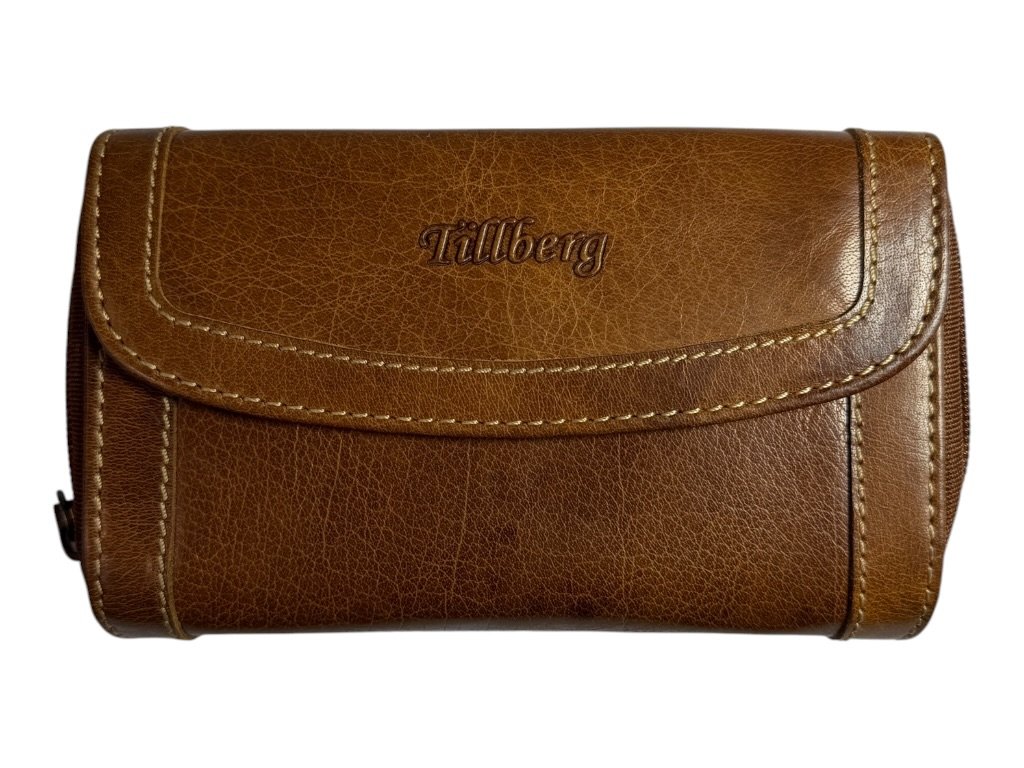Prostorná kožená peněženka značky Tillberg v elegantním hnědém provedení, která spojuje klasický vzhled s maximální praktičností.