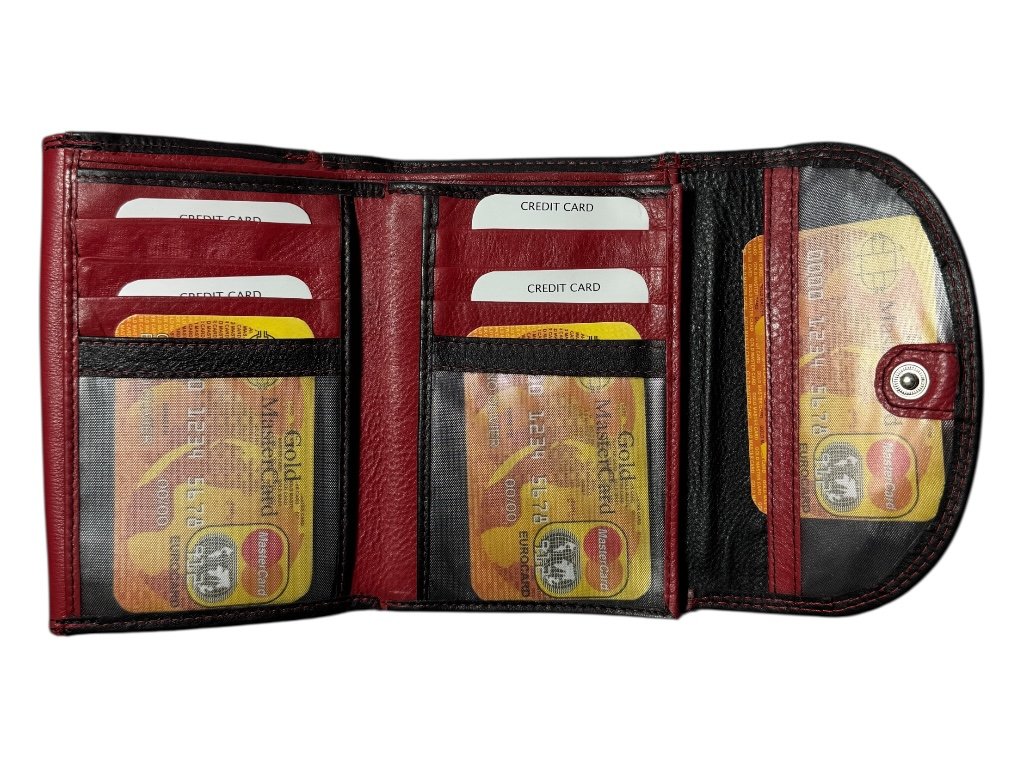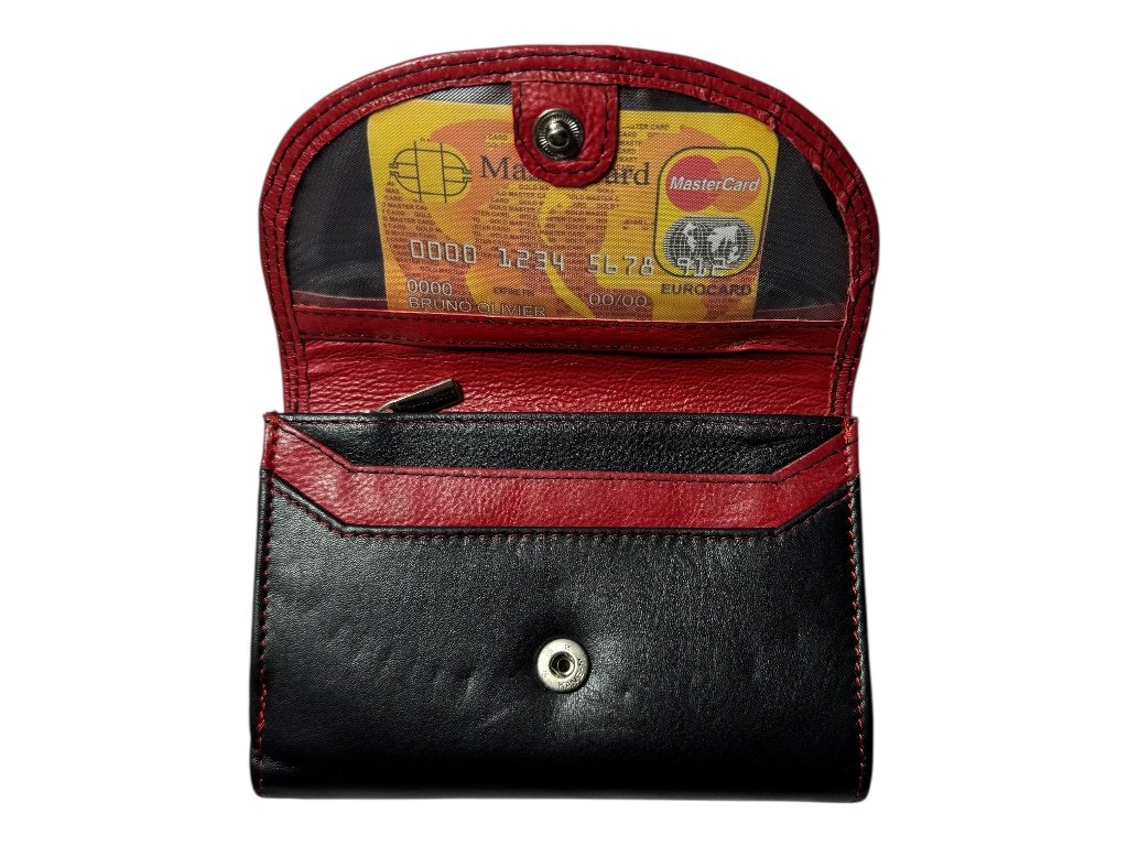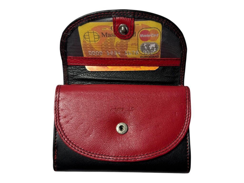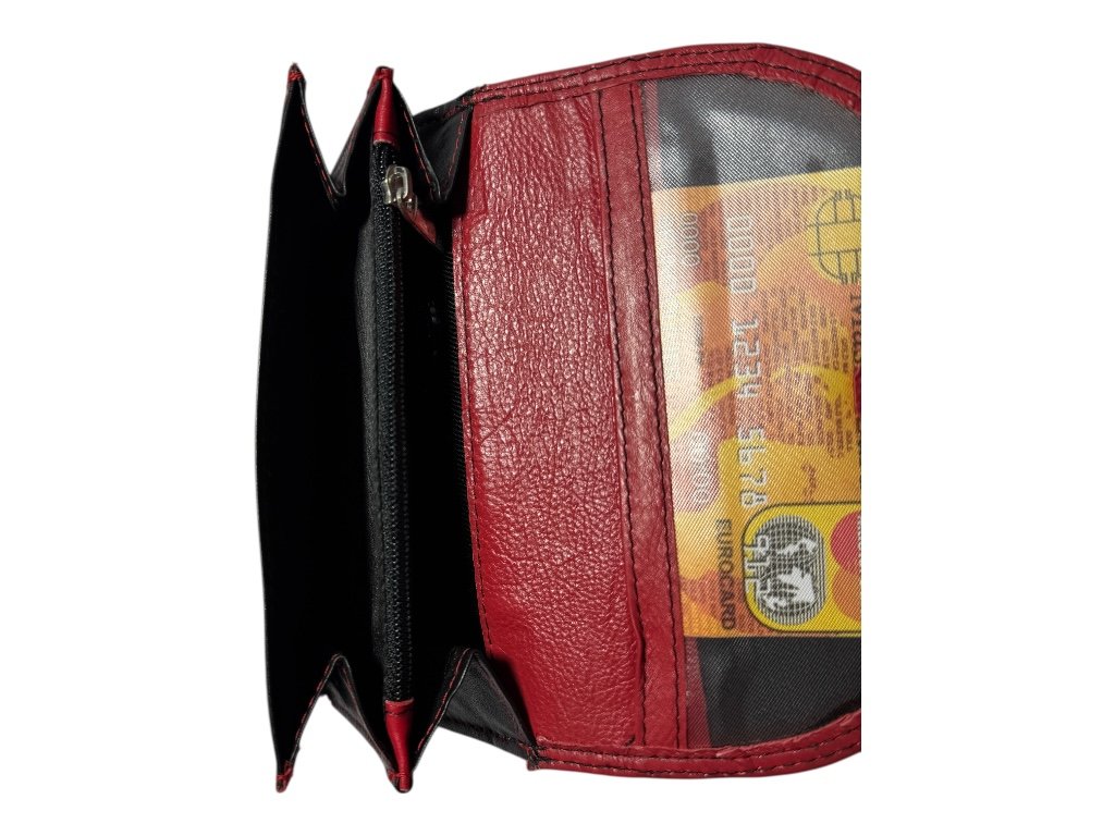 Tato dámská kožená peněženka zaujme elegantní kombinací černé a červené kůže s kontrastním prošitím. Stylový doplněk, který spojuje ženskost, praktičnost i kvalitní zpracování.