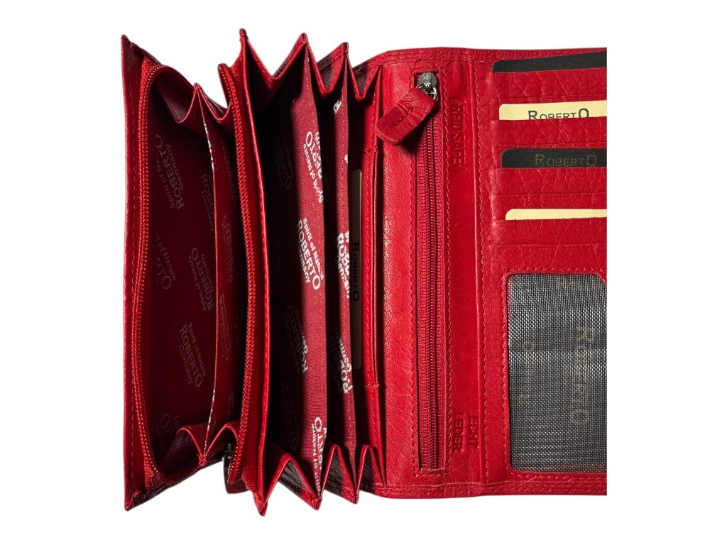 Elegantní dámská kožená peněženka Roberto z pravé kůže zaujme svým výrazným odstínem a kvalitním zpracováním. Je ideální pro ženy, které hledají prostornou, přehlednou a stylovou peněženku pro každodenní nošení.