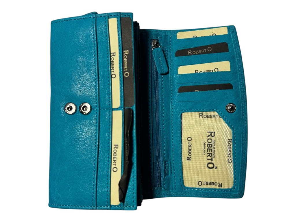 Elegantní dámská kožená peněženka Roberto z pravé kůže zaujme svým výrazným odstínem a kvalitním zpracováním. Je ideální pro ženy, které hledají prostornou, přehlednou a stylovou peněženku pro každodenní nošení.