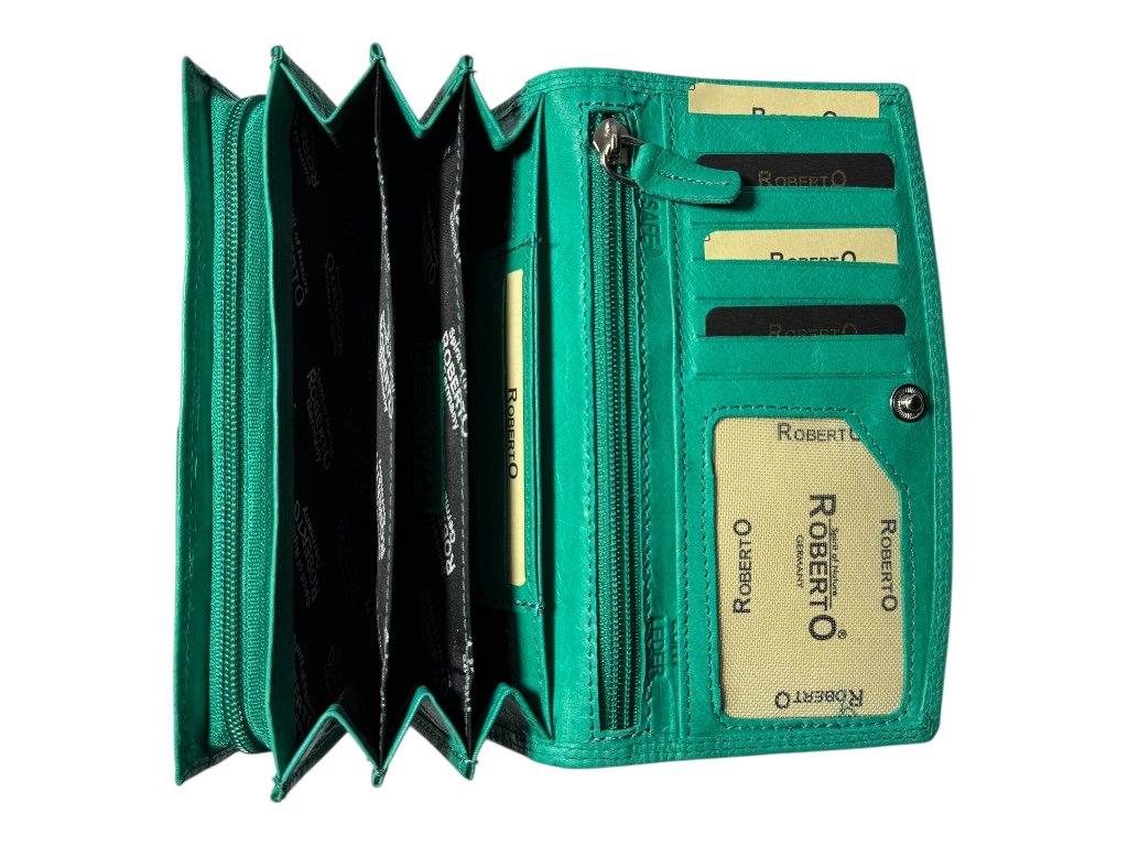 Elegantní dámská kožená peněženka Roberto z pravé kůže zaujme svým výrazným odstínem a kvalitním zpracováním. Je ideální pro ženy, které hledají prostornou, přehlednou a stylovou peněženku pro každodenní nošení.