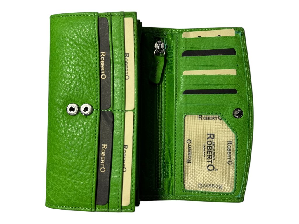 Elegantní dámská kožená peněženka Roberto z pravé kůže zaujme svým výrazným odstínem a kvalitním zpracováním. Je ideální pro ženy, které hledají prostornou, přehlednou a stylovou peněženku pro každodenní nošení.