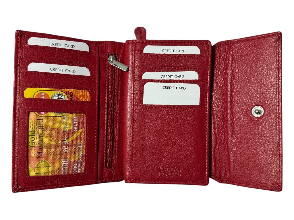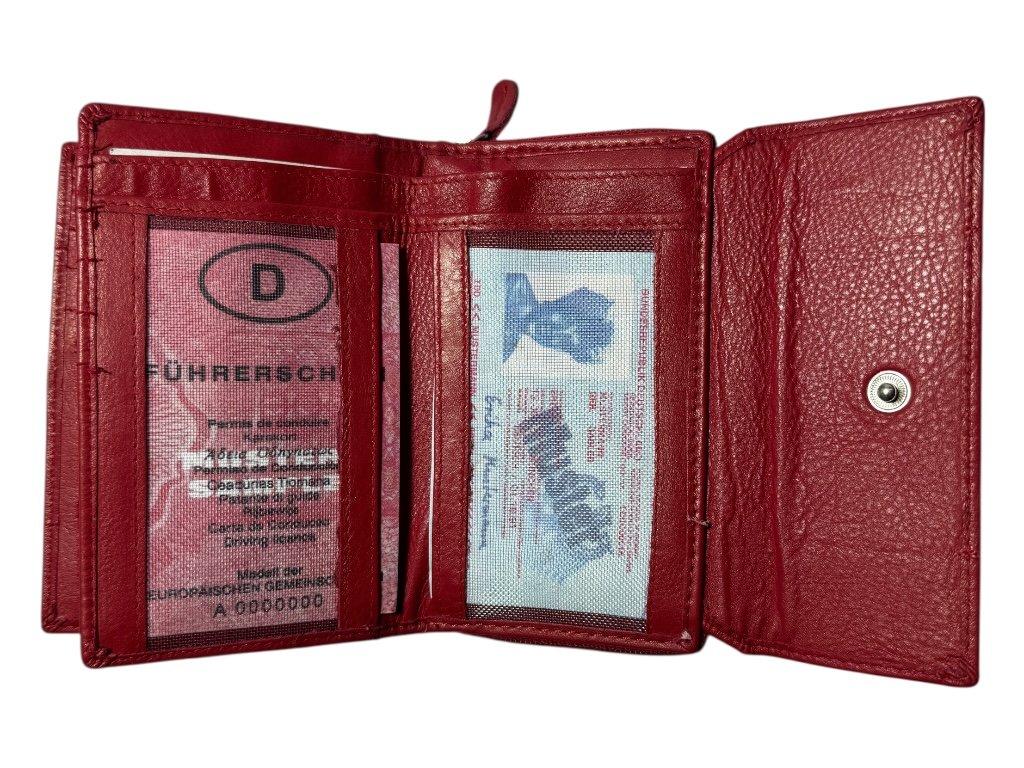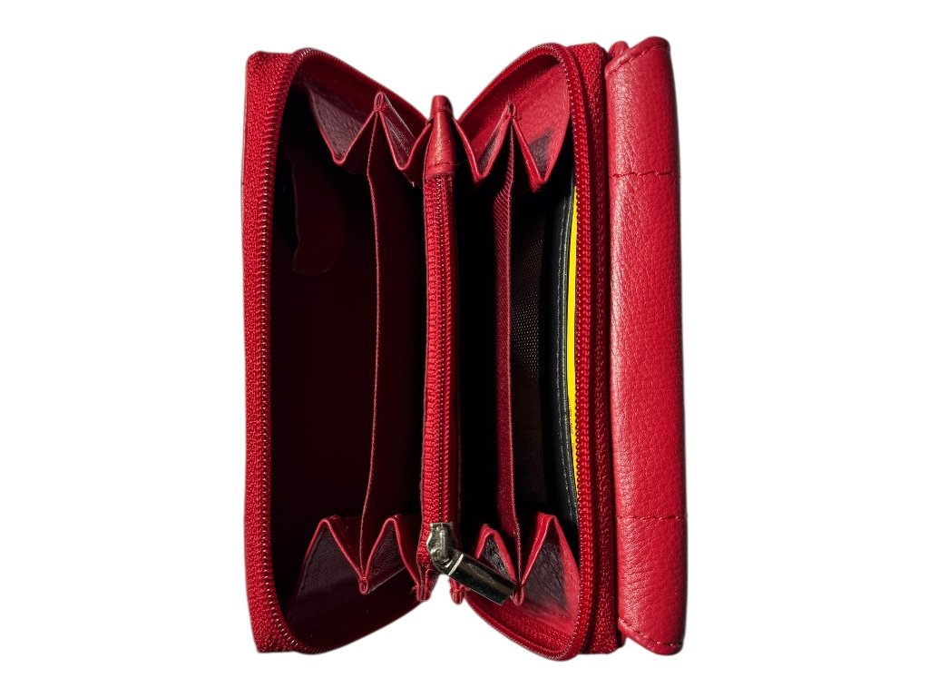 Uvnitř najdeš dvě samostatné přihrádky na bankovky a jednu menší kapsu na zip pro drobnosti. Velkou předností je prostorná zipová sekce, která se otevírá široce a pohodlně. V ní jsou 4 oddělené přihrádky, takže mince, bankovky nebo účtenky můžeš třídit podle potřeby. Součástí je také malá vnitřní zipová kapsa, kam bezpečně uložíš drobné mince nebo jiné cennosti.
