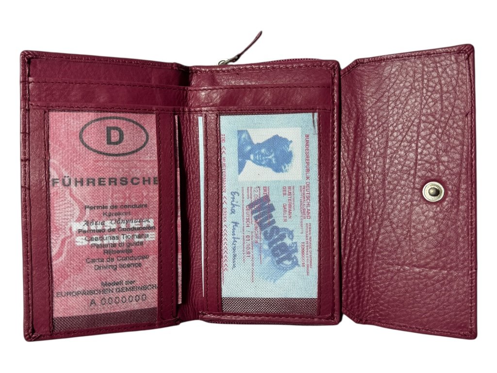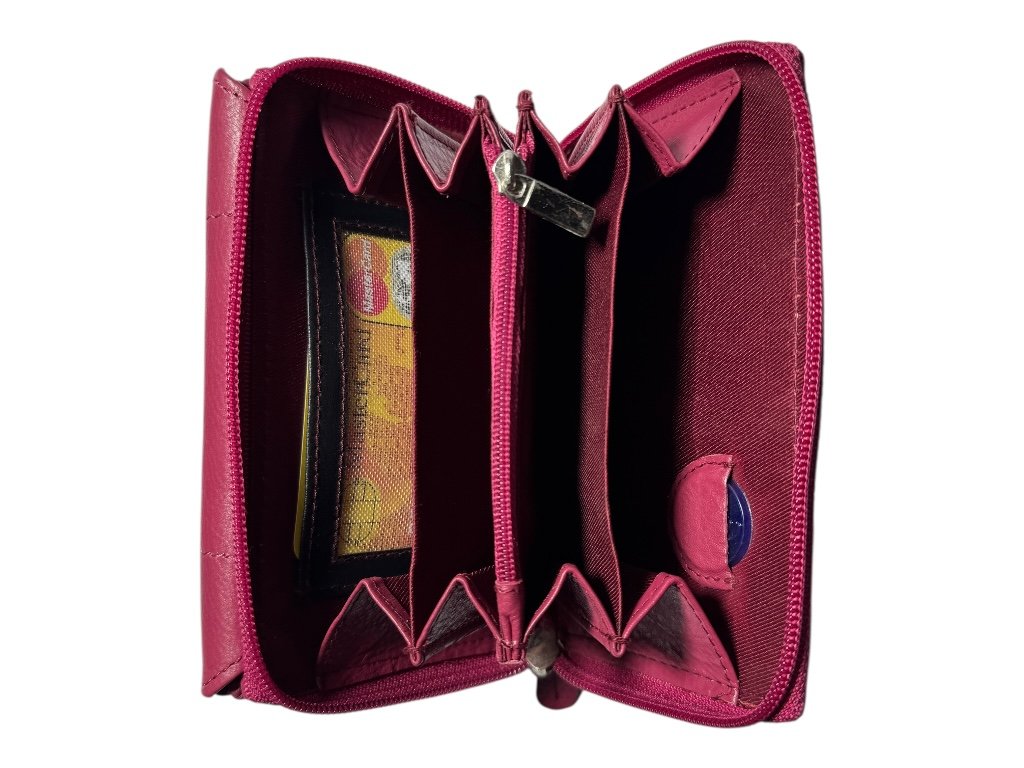 Uvnitř najdeš dvě samostatné přihrádky na bankovky a jednu menší kapsu na zip pro drobnosti. Velkou předností je prostorná zipová sekce, která se otevírá široce a pohodlně. V ní jsou 4 oddělené přihrádky, takže mince, bankovky nebo účtenky můžeš třídit podle potřeby. Součástí je také malá vnitřní zipová kapsa, kam bezpečně uložíš drobné mince nebo jiné cennosti.
