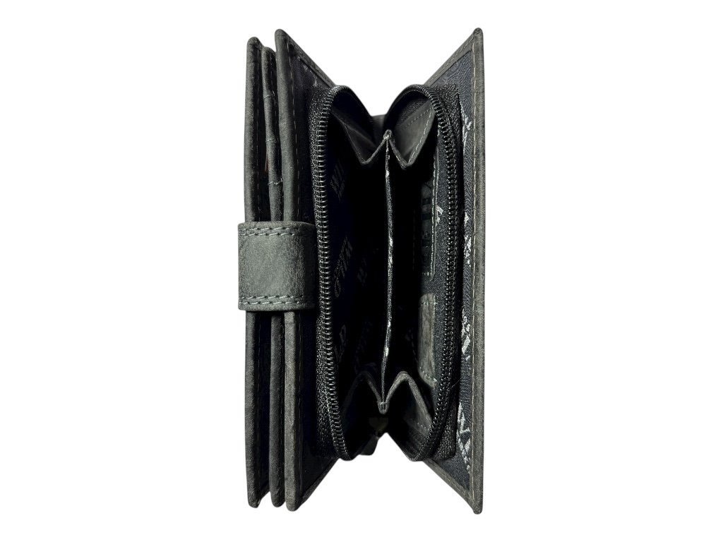 Navzdory kompaktním rozměrům 14,5 × 9,5 cm nabízí dostatek prostoru – obsahuje 18 přihrádek na platební a věrnostní karty, 3 prostorné přihrádky na bankovky a 1 velkou kapsu na zip se dvěma oddíly, kam pohodlně uložíte mince i drobnosti.