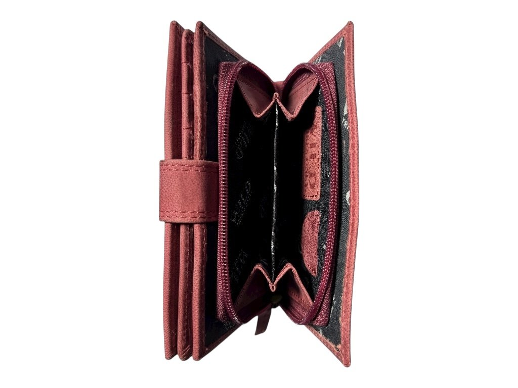 Elegantní dámská kožená peněženka WILD v růžovém provedení spojuje styl, kvalitu a praktičnost v jednom. Vyrobena z pravé kůže, která je na dotek příjemná a zároveň odolná vůči opotřebení. Ideální pro ženy, které chtějí mít vše přehledně uspořádané, ale nechtějí nosit velkou peněženku.