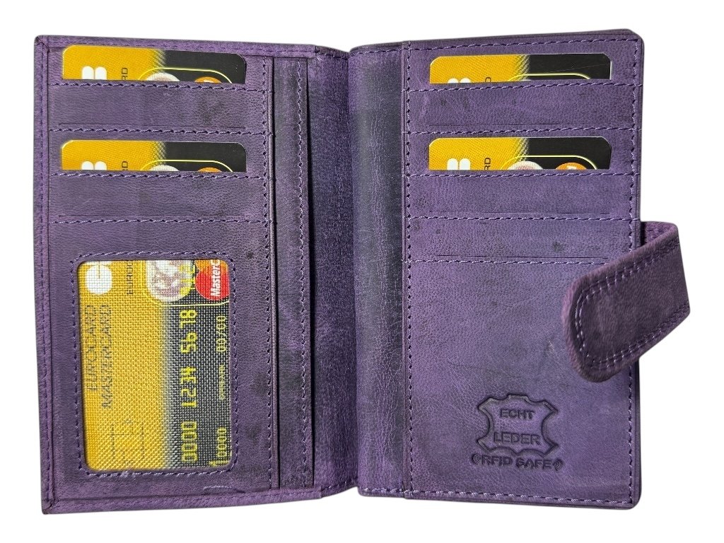Navzdory kompaktním rozměrům 14,5 × 9,5 cm nabízí dostatek prostoru – obsahuje 18 přihrádek na platební a věrnostní karty, 3 prostorné přihrádky na bankovky a 1 velkou kapsu na zip se dvěma oddíly, kam pohodlně uložíte mince i drobnosti.