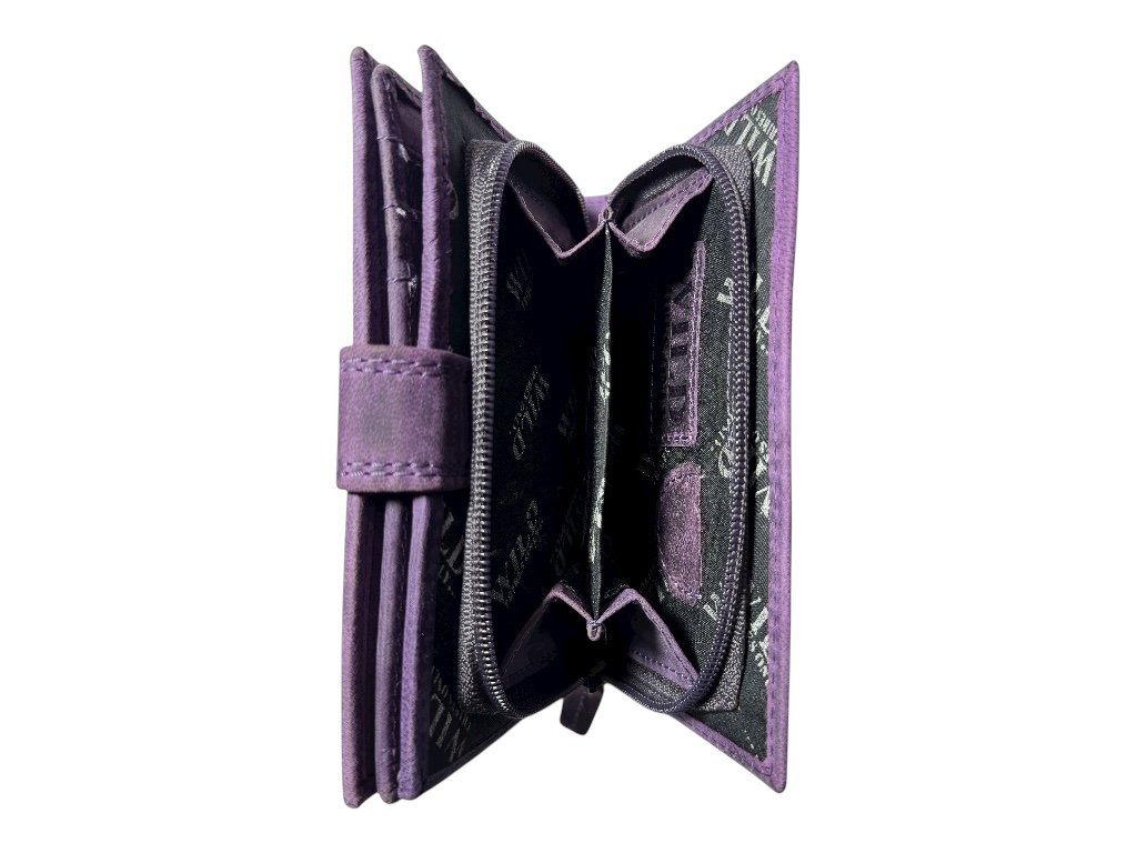 Stylové logo WILD TRIBES ONLY... na přední straně podtrhuje elegantní vzhled peněženky a dodává jí originální charakter.