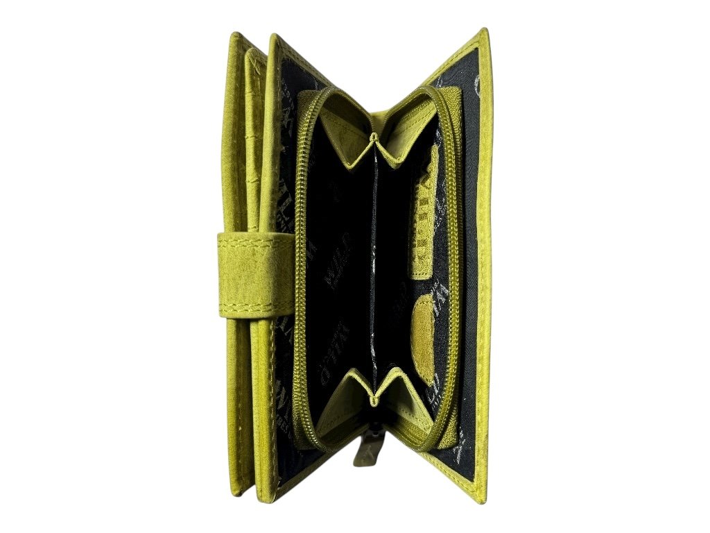 Navzdory kompaktním rozměrům 14,5 × 9,5 cm nabízí dostatek prostoru – obsahuje 18 přihrádek na platební a věrnostní karty, 3 prostorné přihrádky na bankovky a 1 velkou kapsu na zip se dvěma oddíly, kam pohodlně uložíte mince i drobnosti.
