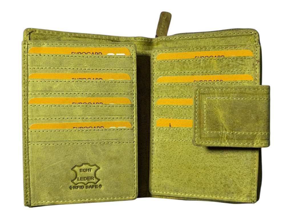 Peněženka nabízí mimořádně prostorné uspořádání – 34 přihrádek na karty, 2 oddíly na bankovky, 1 menší kapsu na zip a velkou kapsu se čtyřmi přihrádkami, kam pohodlně uložíte mince, účtenky i drobnosti. Přehledné členění a zapínání na patent zajišťuje bezpečné a pohodlné používání.