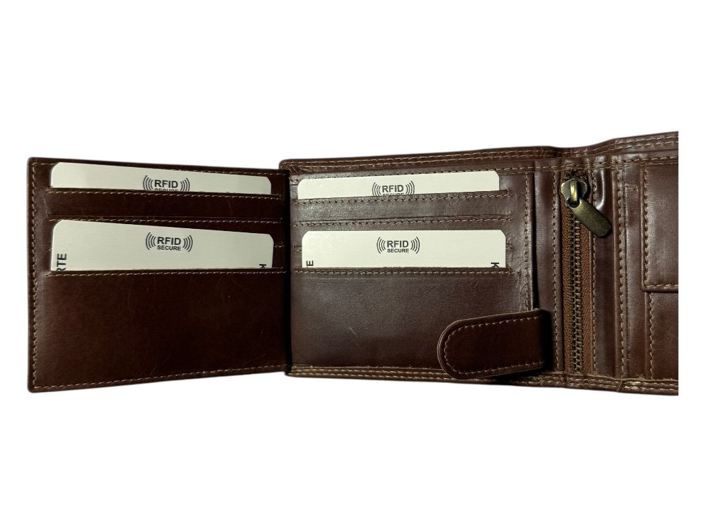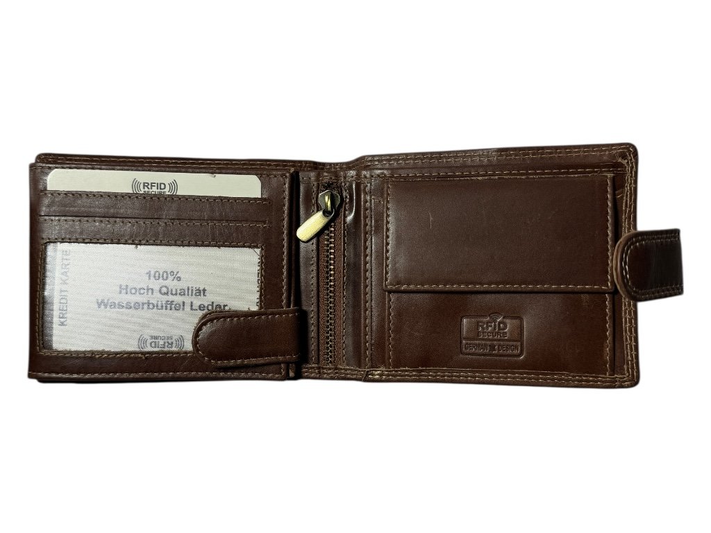 Tato pánská kožená peněženka se zapínáním na cvoček spojuje klasiku, eleganci a praktičnost.