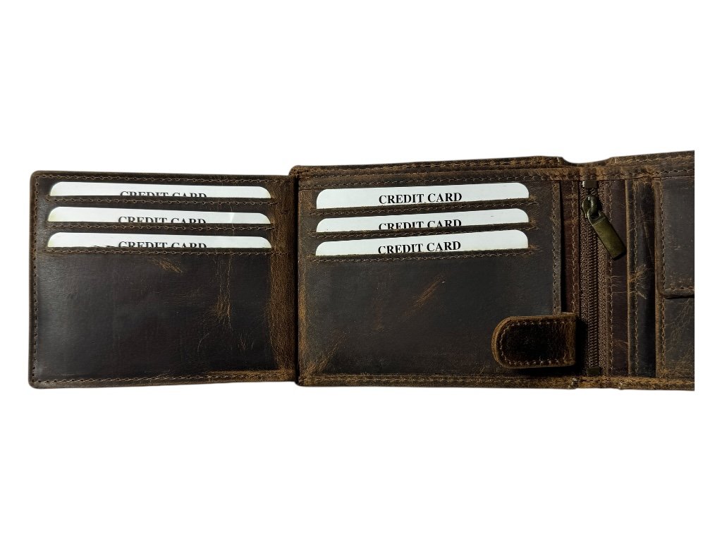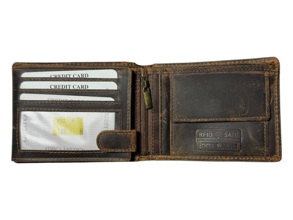 Elegantní pánská kožená peněženka je vyrobena z kvalitní pravé kůže s jemnou patinou, která jí dodává stylový vintage vzhled.