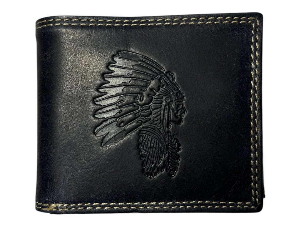Stylový vzhled doplňuje ražba s motivem indiána, která dodává peněžence osobitý charakter.