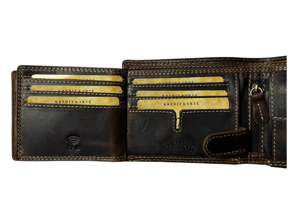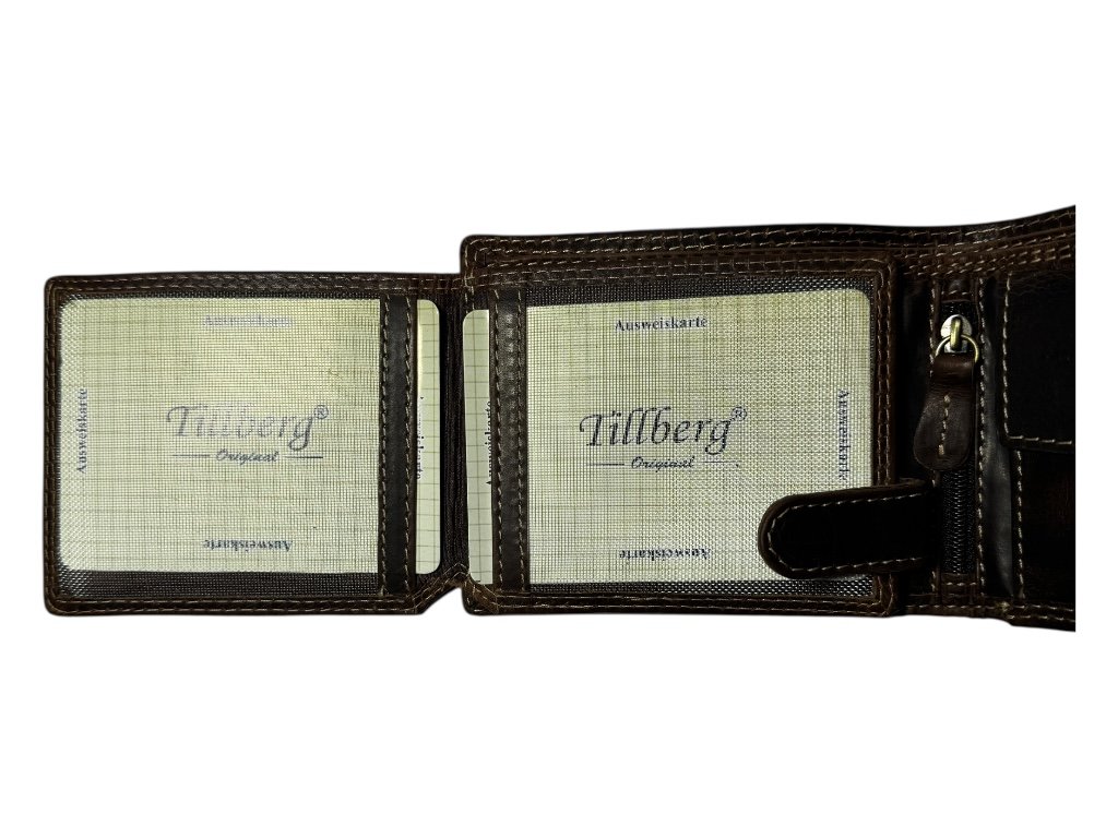 Kvalitní pánská kožená peněženka Tillberg z pravé kůže zaujme svým originálním reliéfem indiána a výrazným kontrastním prošitím. Kombinuje klasický design s praktickým členěním, které z ní dělá ideální doplněk pro každodenní nošení.