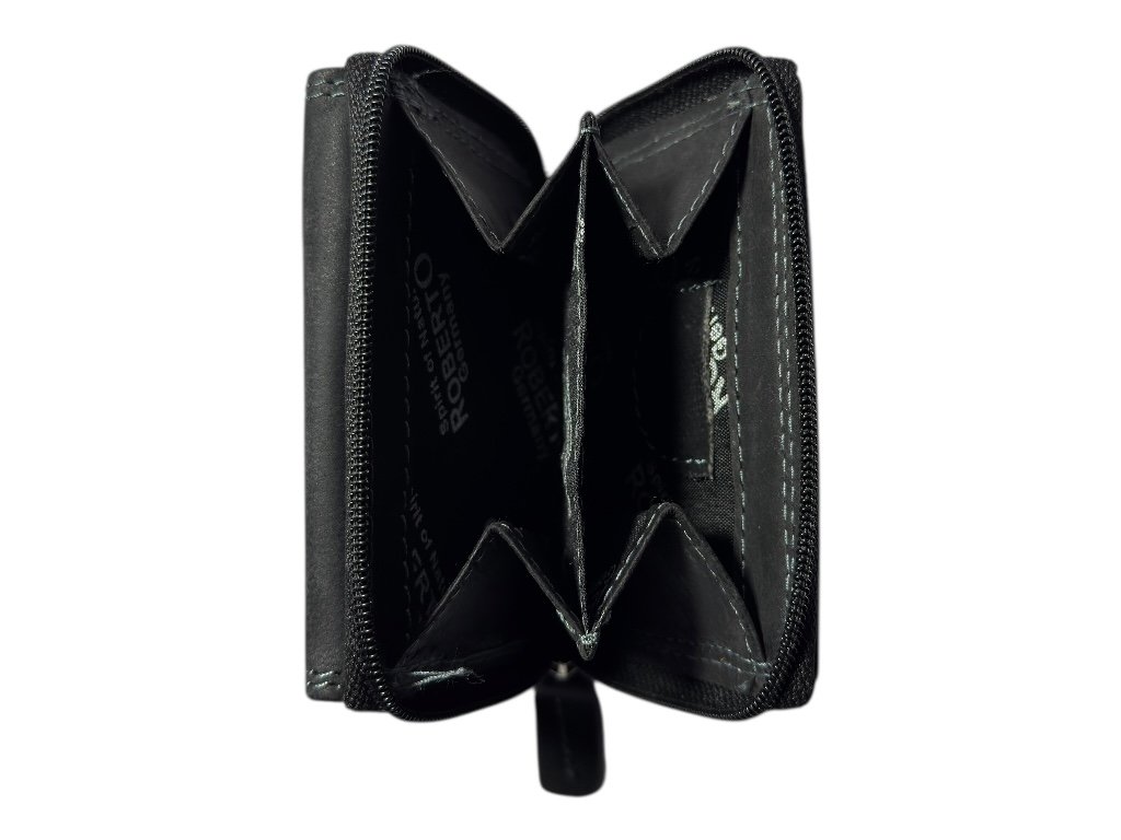 Malá kožená peněženka z pravé kůže, ideální pro ty, kteří preferují kompaktní a praktický styl. Hlavní část tvoří prostorná zipová kapsa na mince, která je uvnitř rozdělená na dvě oddělené přihrádky. Nechybí ani dvě samostatné přihrádky na papírové bankovky. Díky malému formátu se pohodlně vejde do každé kabelky nebo kapsy, a přesto poskytuje dostatek prostoru pro vše potřebné.