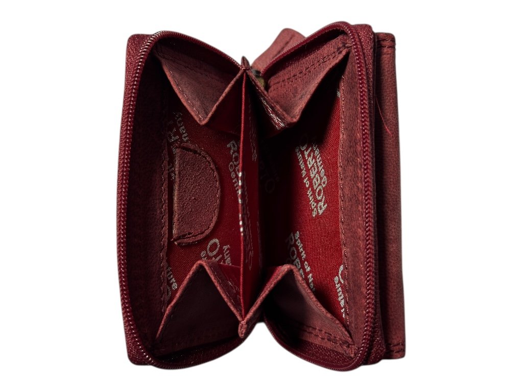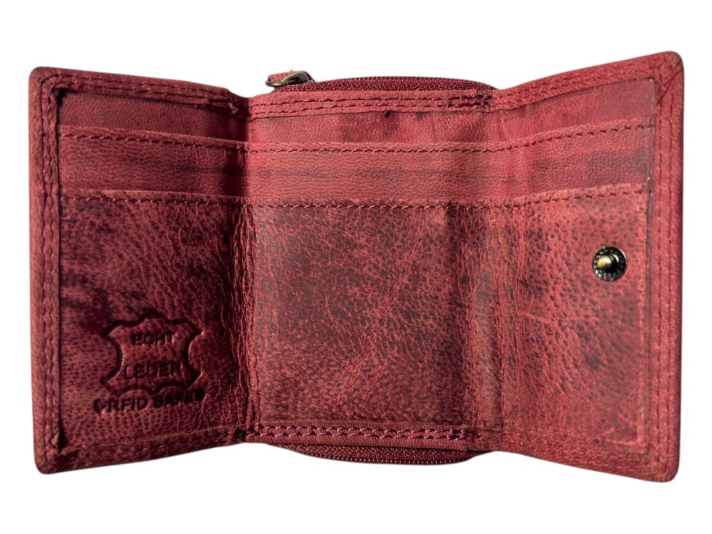 Malá kožená peněženka z pravé kůže, ideální pro ty, kteří preferují kompaktní a praktický styl. Hlavní část tvoří prostorná zipová kapsa na mince, která je uvnitř rozdělená na dvě oddělené přihrádky. Nechybí ani dvě samostatné přihrádky na papírové bankovky. Díky malému formátu se pohodlně vejde do každé kabelky nebo kapsy, a přesto poskytuje dostatek prostoru pro vše potřebné.
