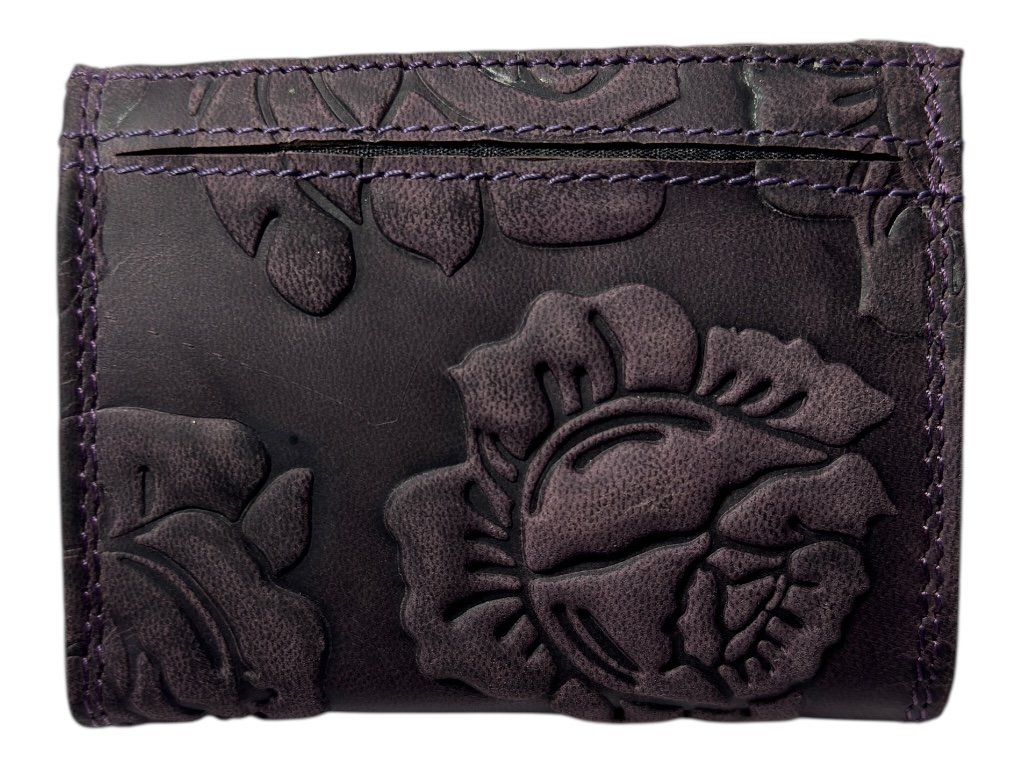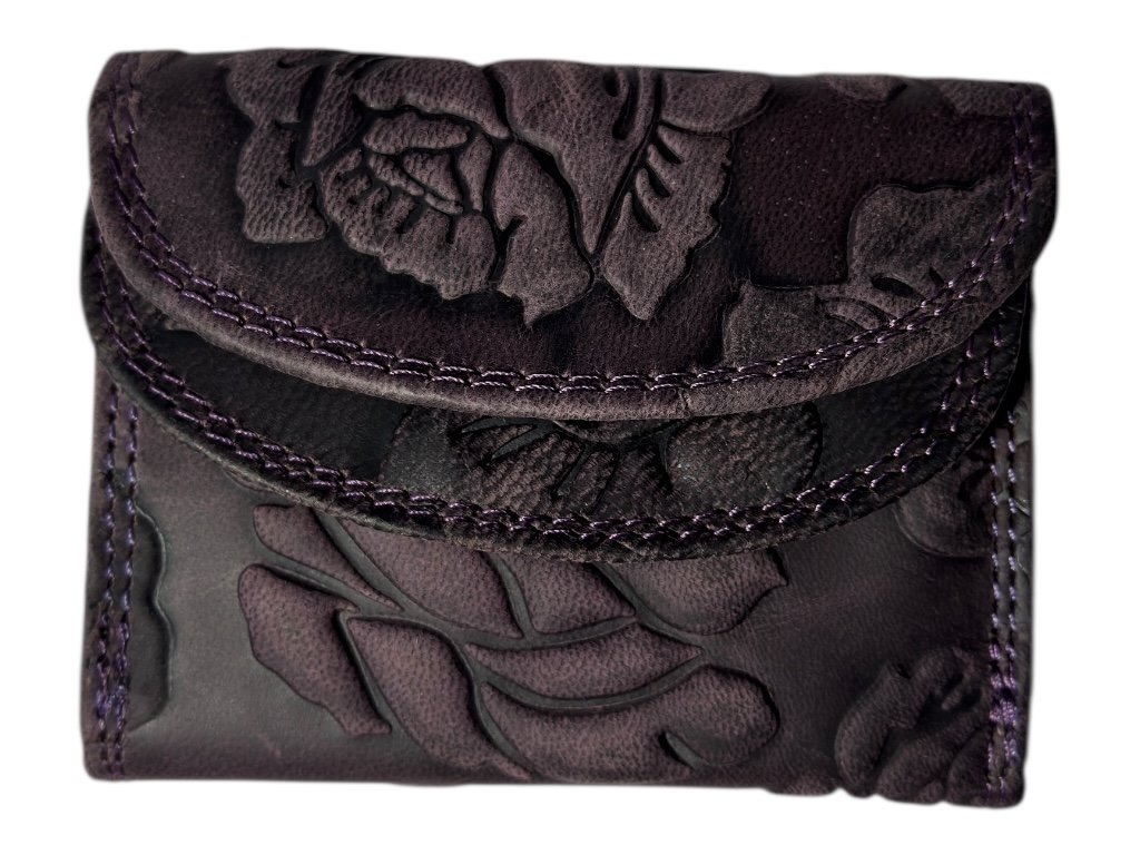 Tato malá kožená peněženka je skvělou volbou pro ženy, které hledají spojení praktičnosti a originálního designu. Reliéfní květinové zdobení dodává peněžence luxusní a jedinečný vzhled, který si okamžitě zamiluješ.