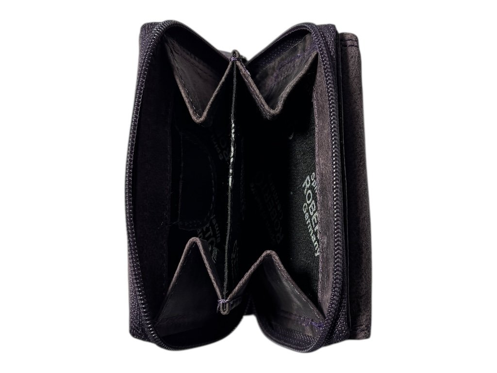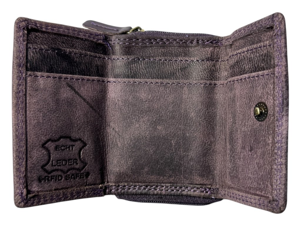 Malá kožená peněženka z pravé kůže, ideální pro ty, kteří preferují kompaktní a praktický styl. Hlavní část tvoří prostorná zipová kapsa na mince, která je uvnitř rozdělená na dvě oddělené přihrádky. Nechybí ani dvě samostatné přihrádky na papírové bankovky. Díky malému formátu se pohodlně vejde do každé kabelky nebo kapsy, a přesto poskytuje dostatek prostoru pro vše potřebné.
