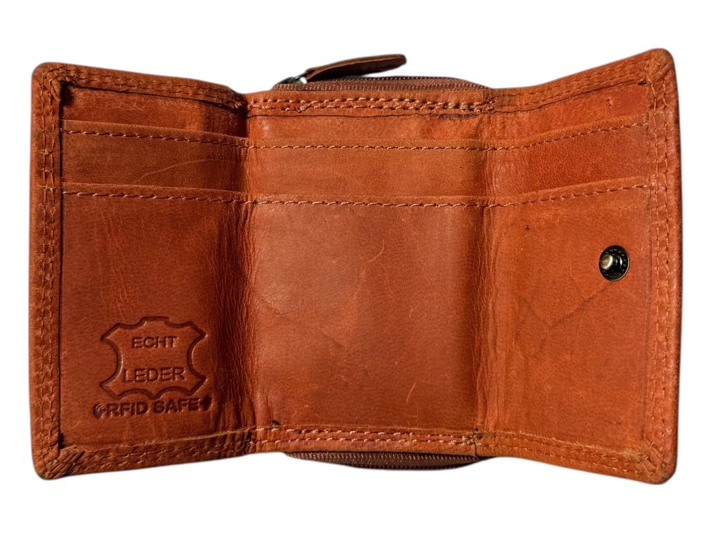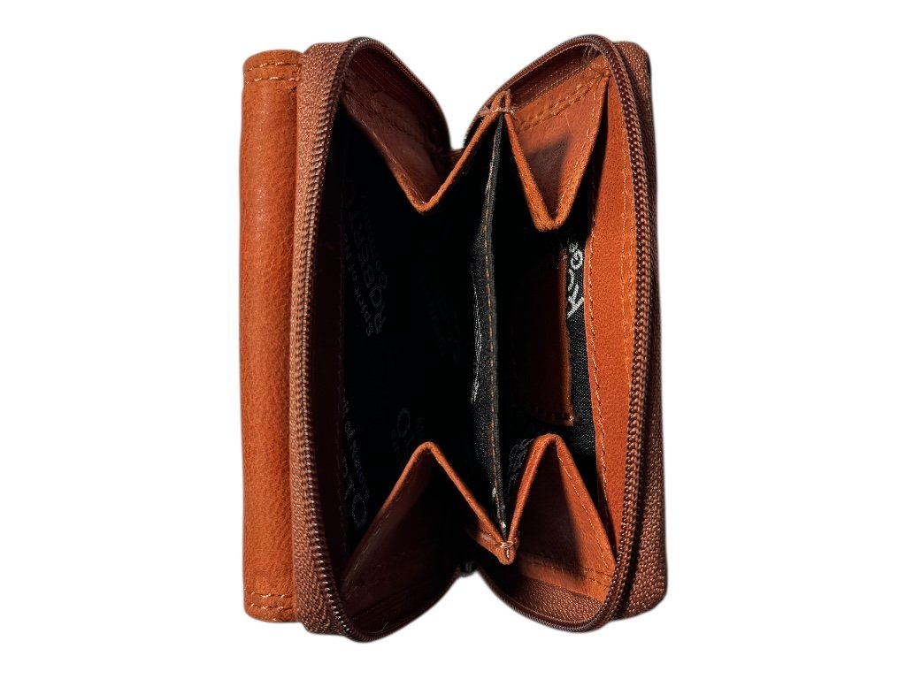 Malá kožená peněženka z pravé kůže, ideální pro ty, kteří preferují kompaktní a praktický styl. Hlavní část tvoří prostorná zipová kapsa na mince, která je uvnitř rozdělená na dvě oddělené přihrádky. Nechybí ani dvě samostatné přihrádky na papírové bankovky. Díky malému formátu se pohodlně vejde do každé kabelky nebo kapsy, a přesto poskytuje dostatek prostoru pro vše potřebné.