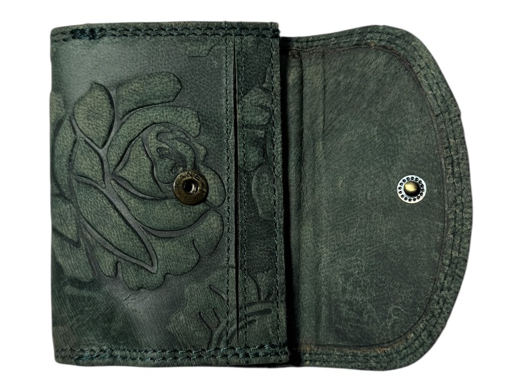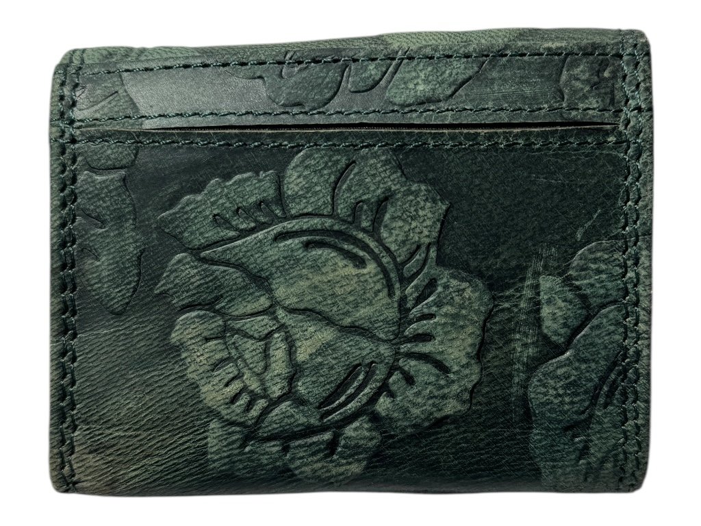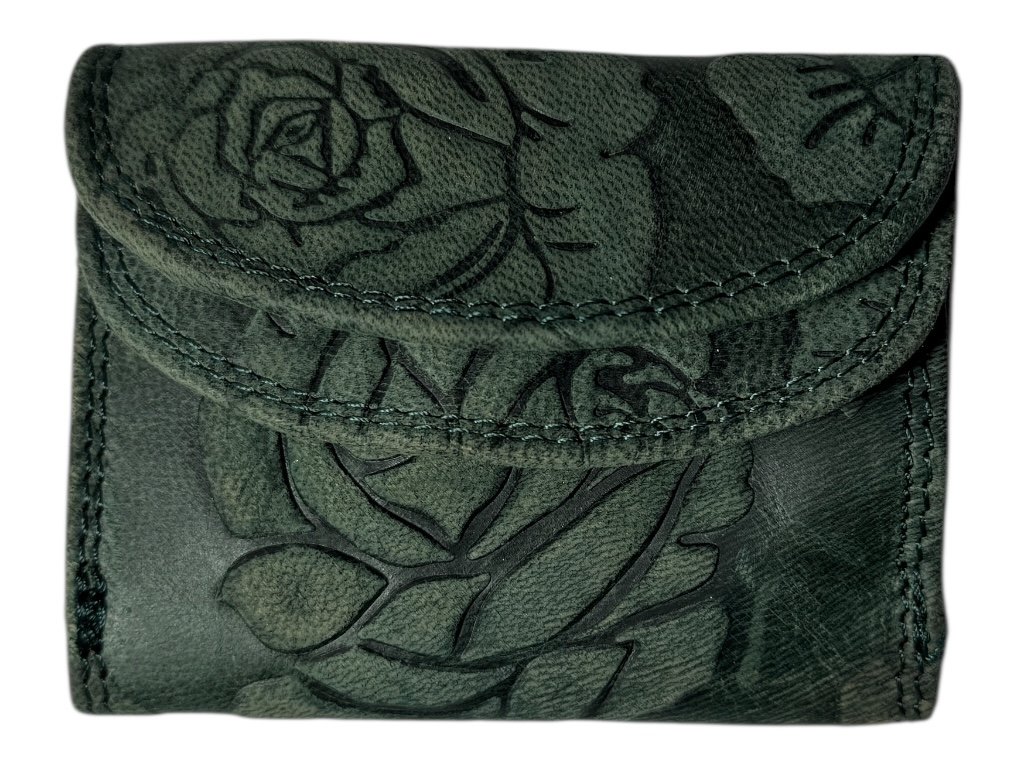 Tato malá kožená peněženka je skvělou volbou pro ženy, které hledají spojení praktičnosti a originálního designu. Reliéfní květinové zdobení dodává peněžence luxusní a jedinečný vzhled, který si okamžitě zamiluješ.