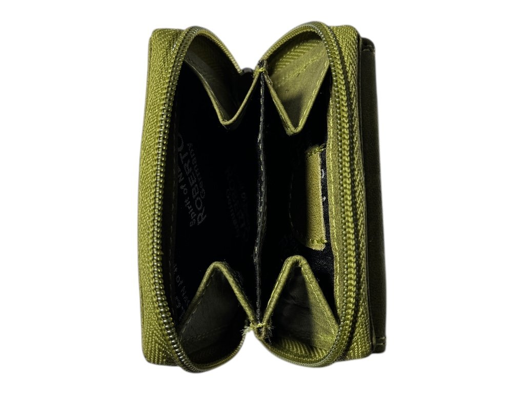 Malá kožená peněženka z pravé kůže, ideální pro ty, kteří preferují kompaktní a praktický styl. Hlavní část tvoří prostorná zipová kapsa na mince, která je uvnitř rozdělená na dvě oddělené přihrádky. Nechybí ani dvě samostatné přihrádky na papírové bankovky. Díky malému formátu se pohodlně vejde do každé kabelky nebo kapsy, a přesto poskytuje dostatek prostoru pro vše potřebné.