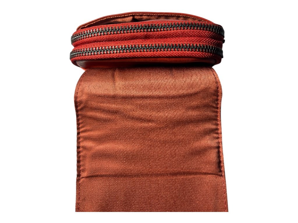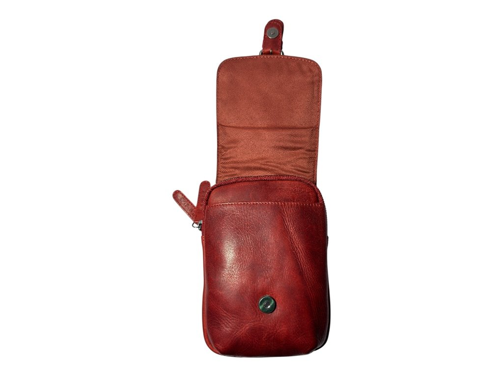 Na zadní straně je široké poutko, díky kterému můžeš tašku pohodlně nosit i na opasku. Zároveň lze připnout nebo odepnout přiložený dlouhý popruh, takže si můžeš zvolit styl nošení přes rameno nebo crossbody.