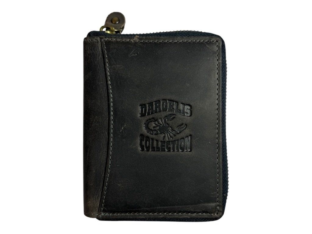 Kvalitní kožená peněženka značky DARGELIS v černém provedení, která zaujme svým robustním designem a bezpečným zapínáním na zip po celém obvodu.