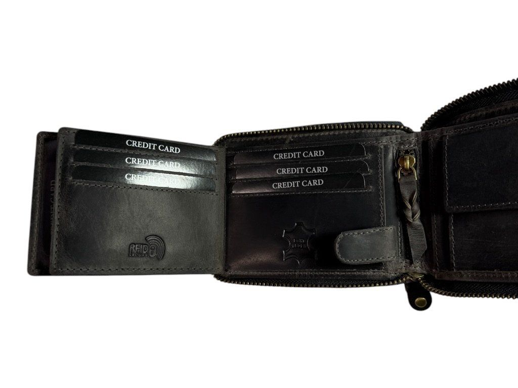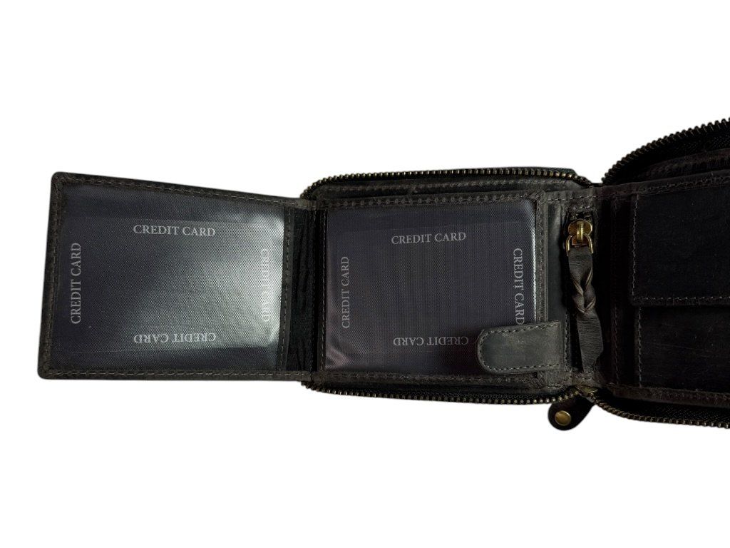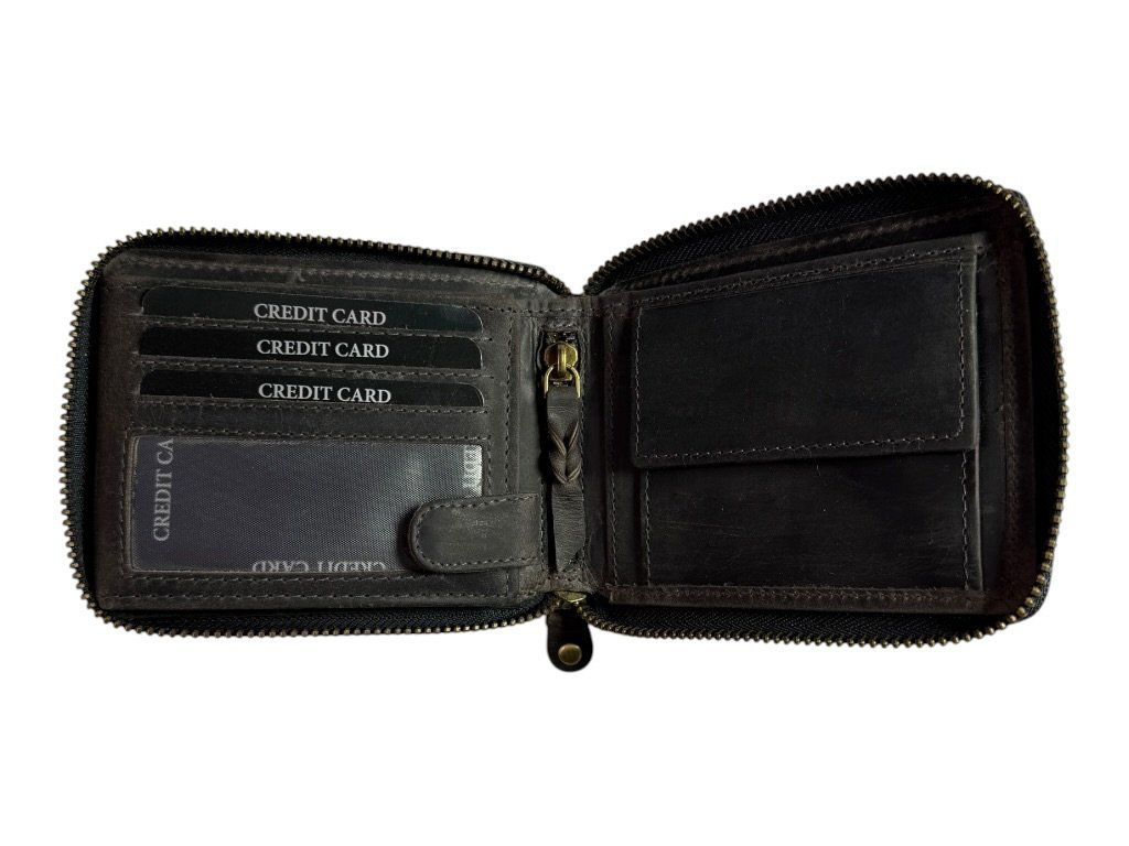 Kožená peněženka DARGELIS se zapínáním na zip po celém obvodu, přehledným uspořádáním a dostatkem prostoru na karty i hotovost.