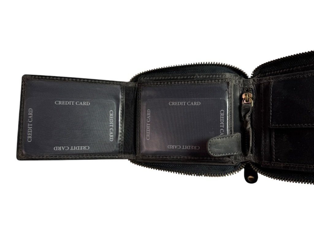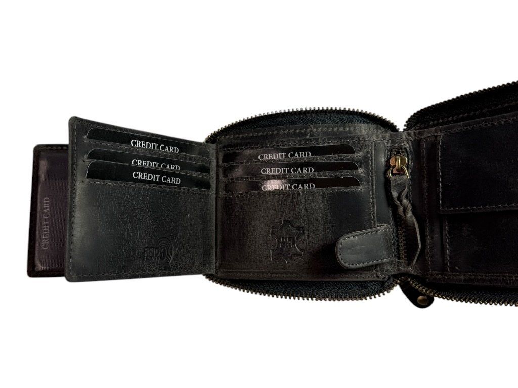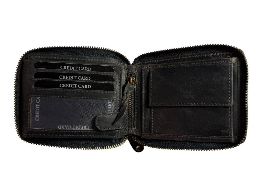 Kožená peněženka DARGELIS se zapínáním na zip po celém obvodu, přehledným uspořádáním a dostatkem prostoru na karty i hotovost.