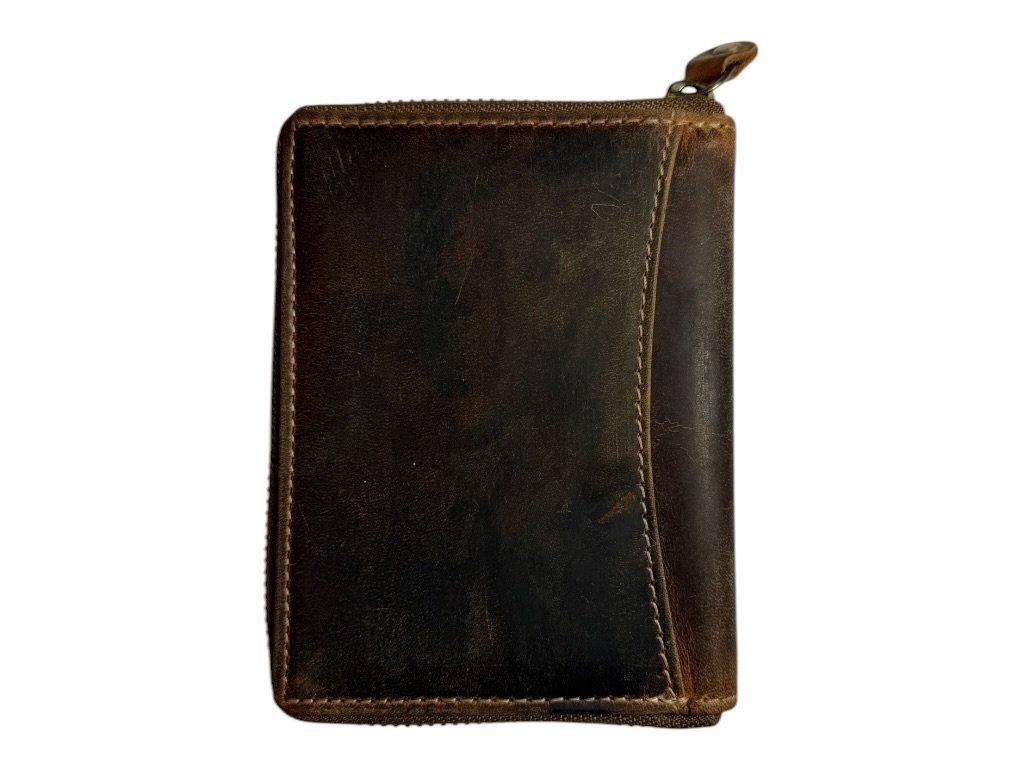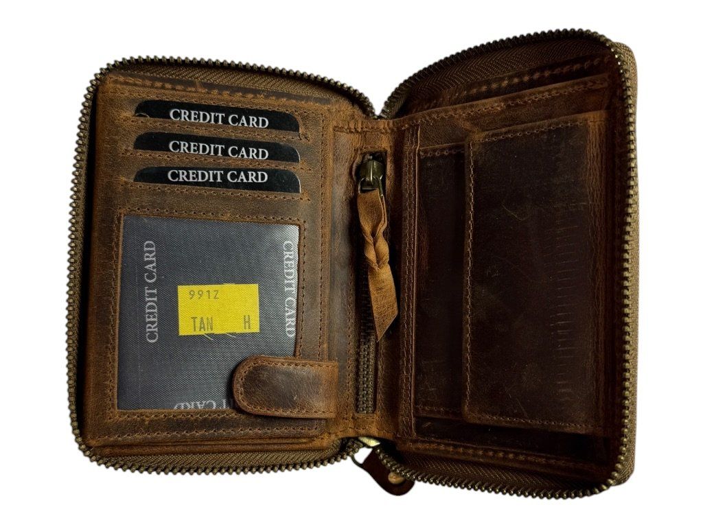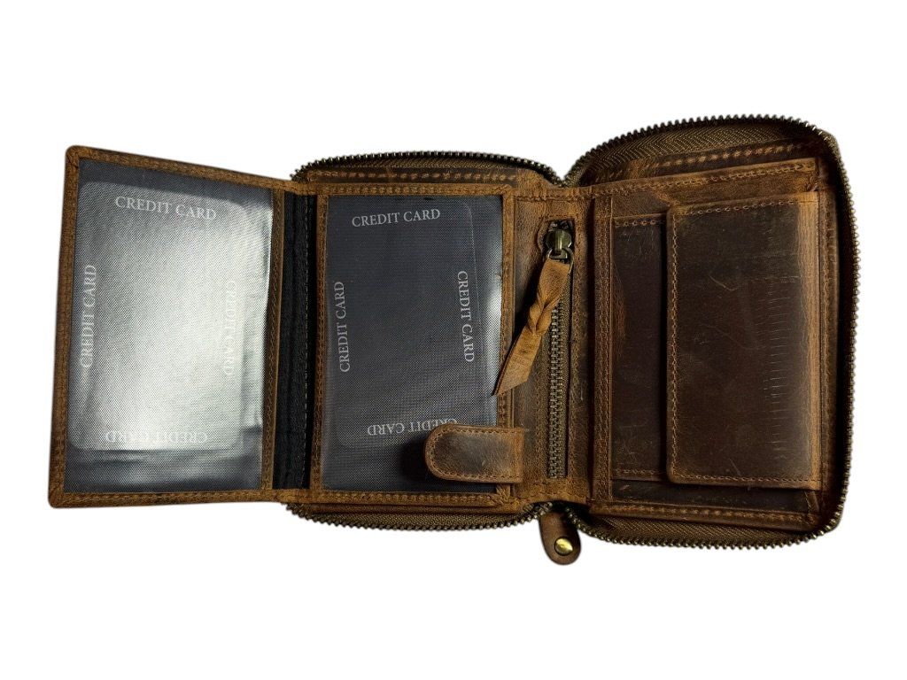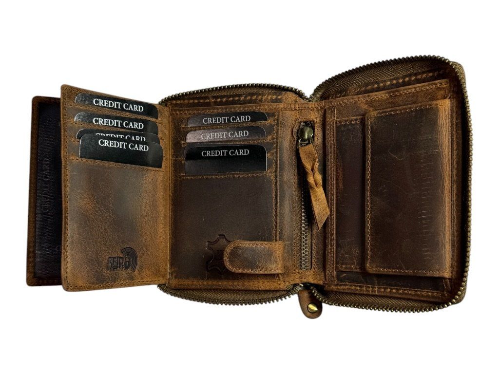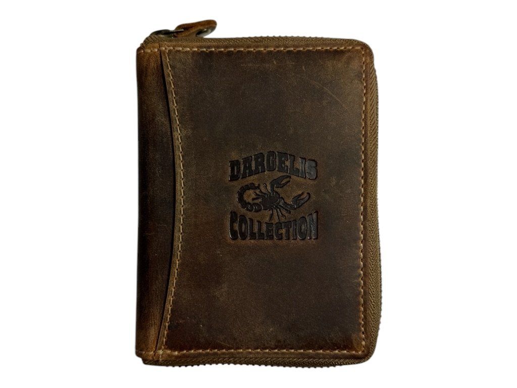 Kožená peněženka DARGELIS s uzavíráním na zip po celém obvodu, velkým prostorem na karty a praktickým vnitřním uspořádáním.