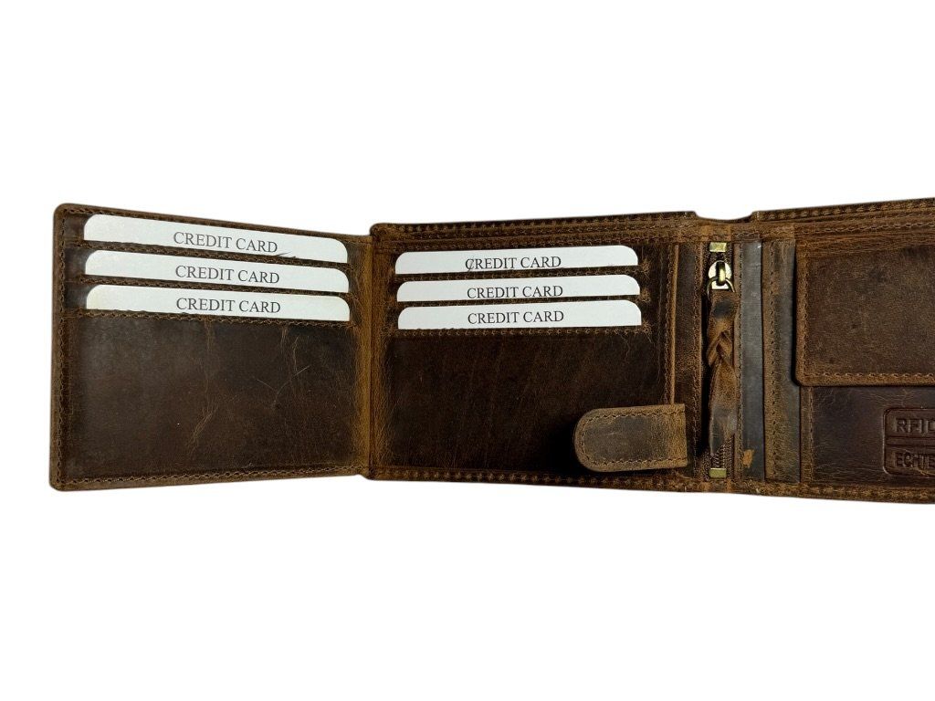 Kompaktní kožená peněženka s prostorem pro 14 karet, kapsou na mince a dvěma přihrádkami na bankovky. Ideální pro každodenní použití.