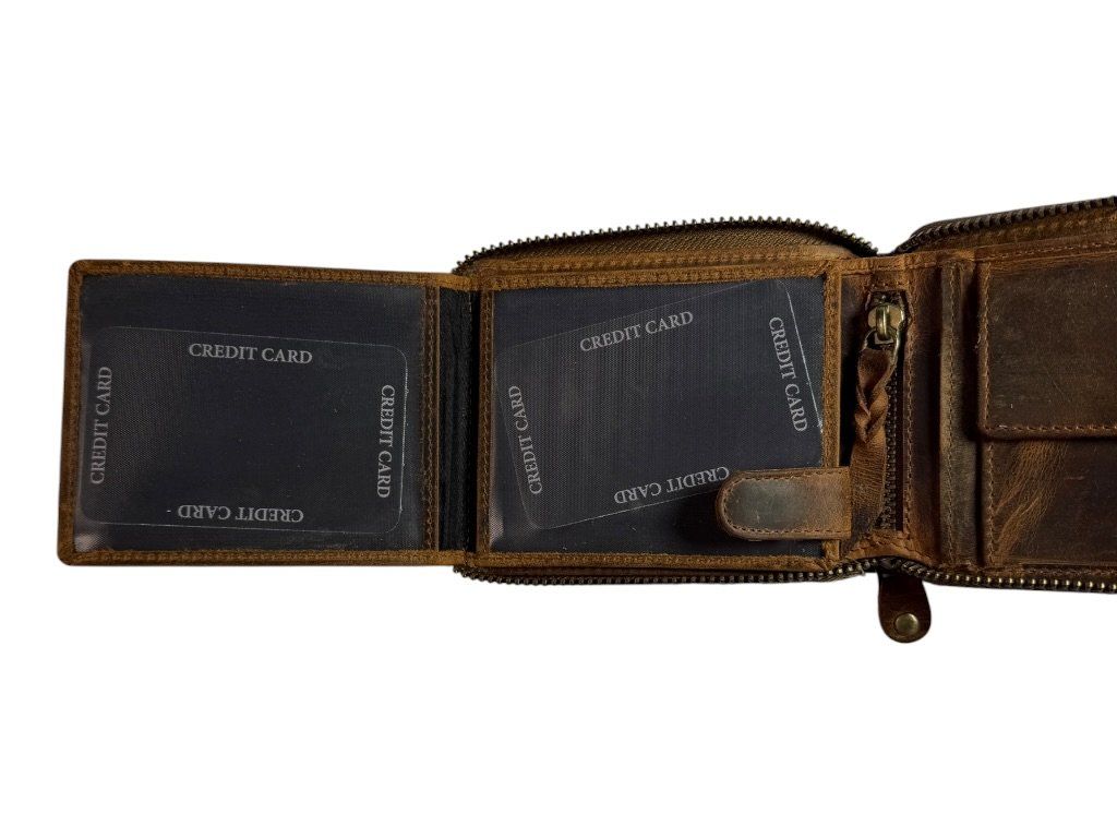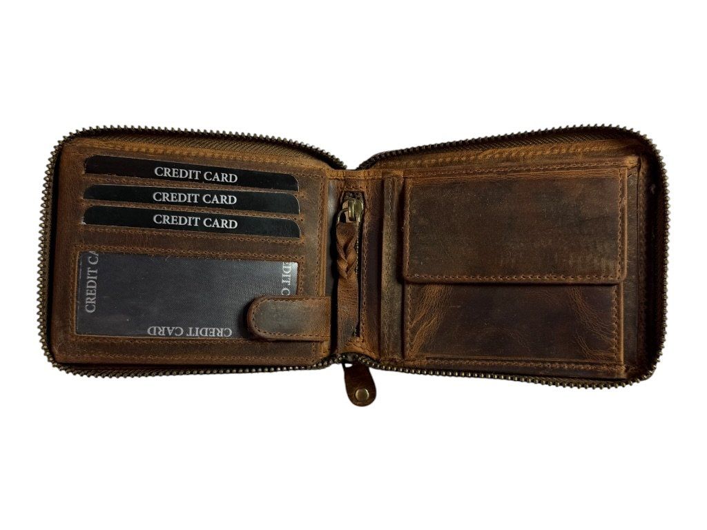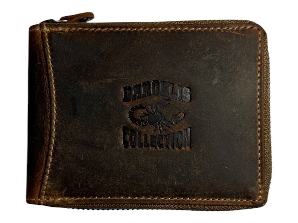 Kožená peněženka DARGELIS se zapínáním na zip po celém obvodu, přehledným uspořádáním a dostatkem prostoru na karty i hotovost.