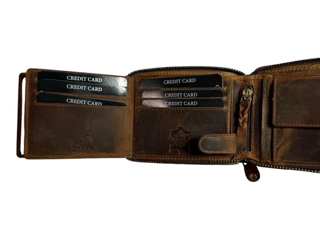Peněženka je vyrobena z pravé kůže, která je odolná a časem získává přirozenou patinu, díky čemuž každý kus působí jedinečně.