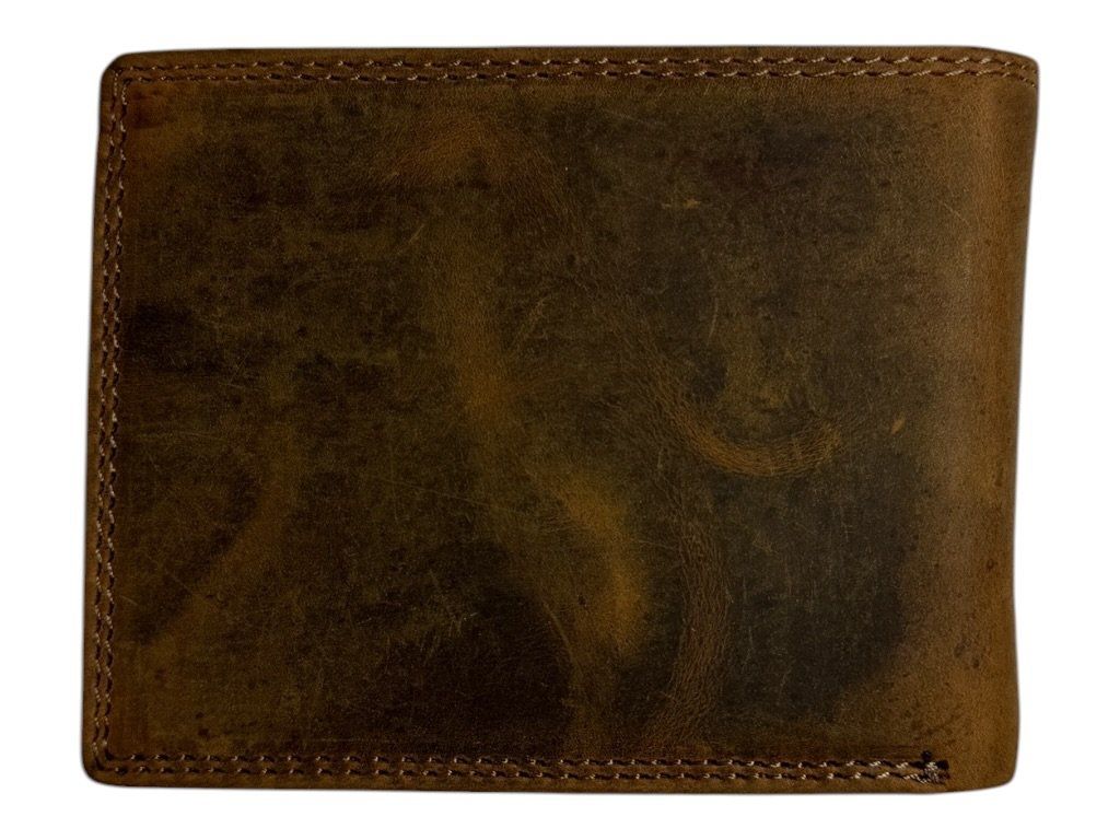Vyrobena z kvalitní broušené kůže, díky které má jedinečný vzhled a postupem času získává charakteristickou patinu. Kompaktní rozměr 9 × 12 cm zajišťuje pohodlné nošení v kapse.