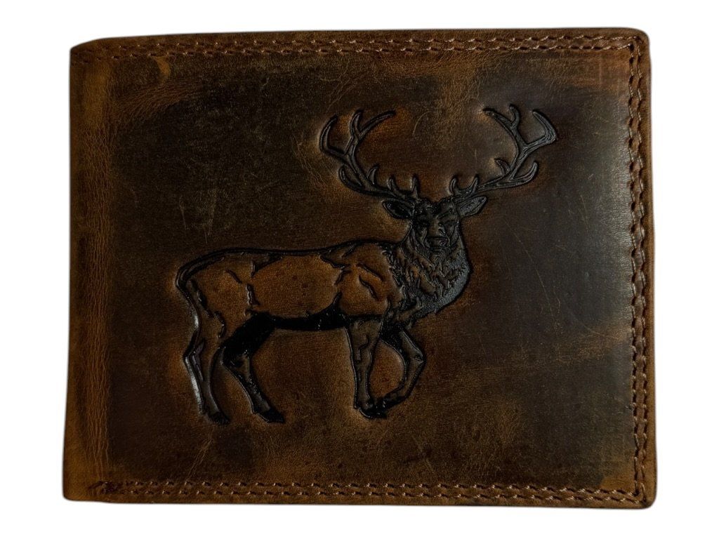 Stylová kožená peněženka s originálním motivem jelena na přední straně, která zaujme na první pohled.