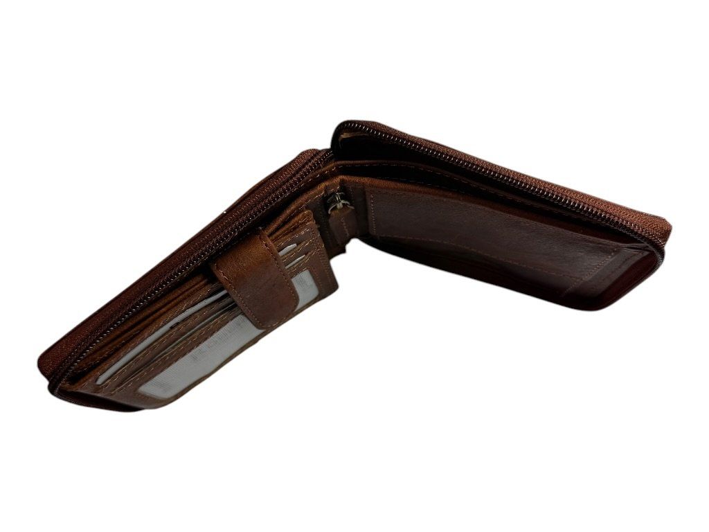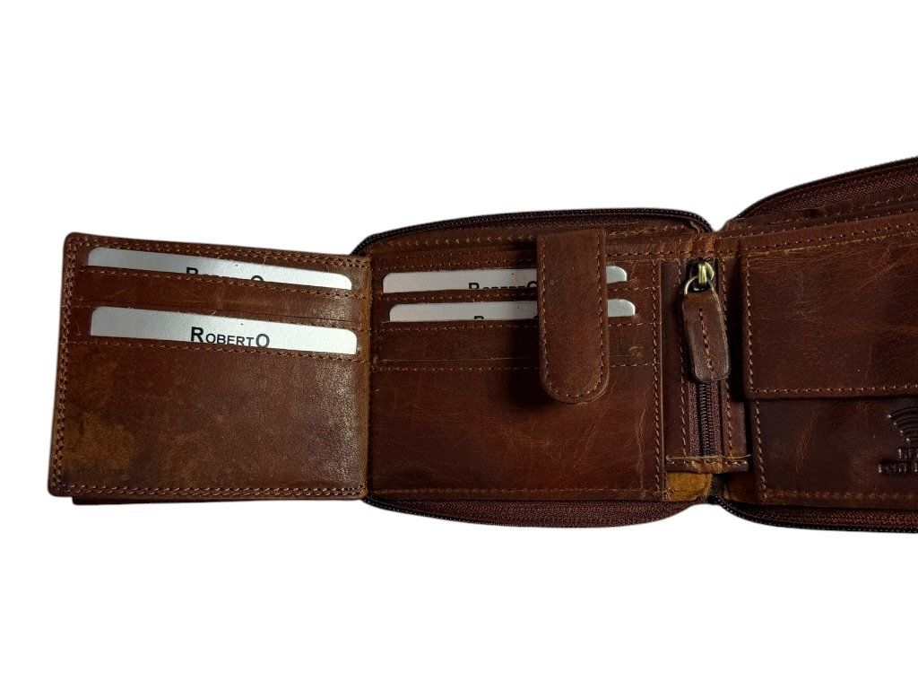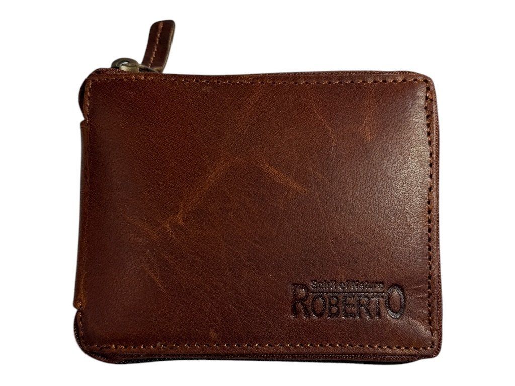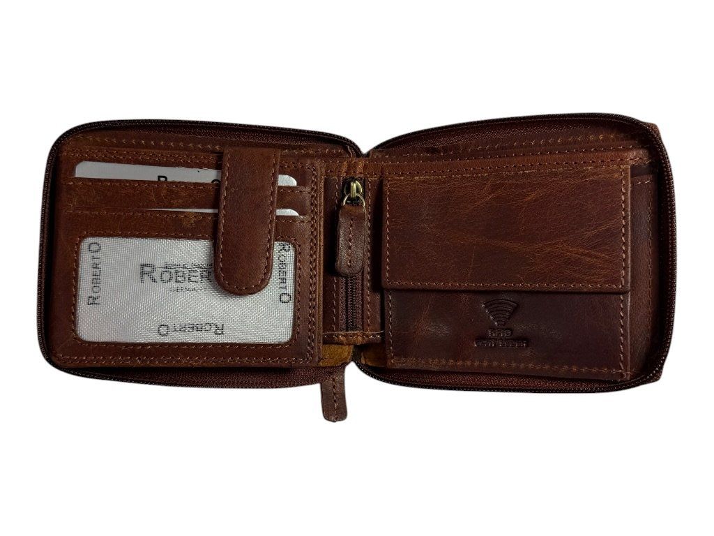 Kožená peněženka ROBERTO s praktickým zapínáním na zip po celém obvodu a přehledným vnitřním uspořádáním.