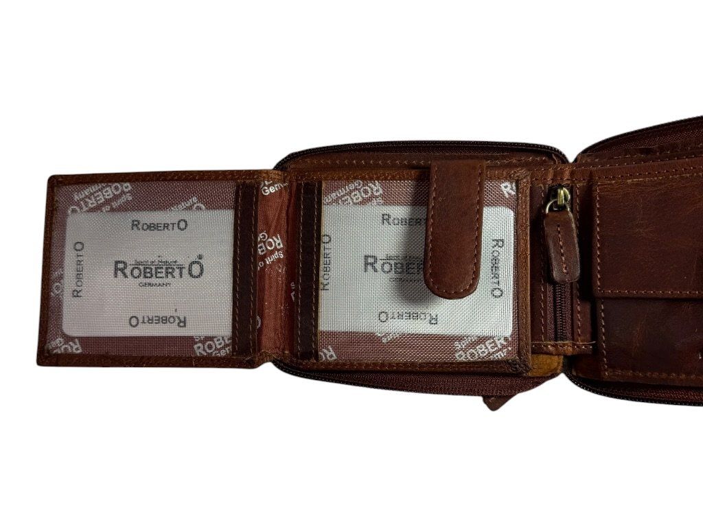 Elegantní kožená peněženka značky ROBERTO v hnědém provedení, ideální pro každodenní použití.