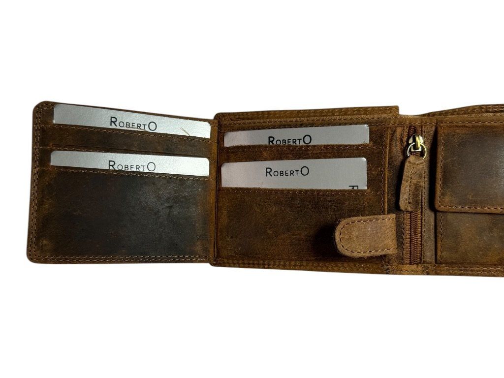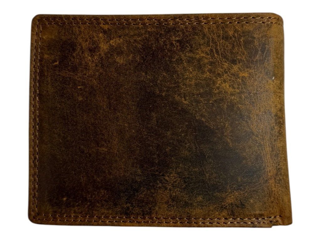 Vyrobena z kvalitní broušené kůže, díky které má jedinečný vzhled a postupem času získává charakteristickou patinu. Kompaktní rozměr 9 × 12 cm zajišťuje pohodlné nošení v kapse.