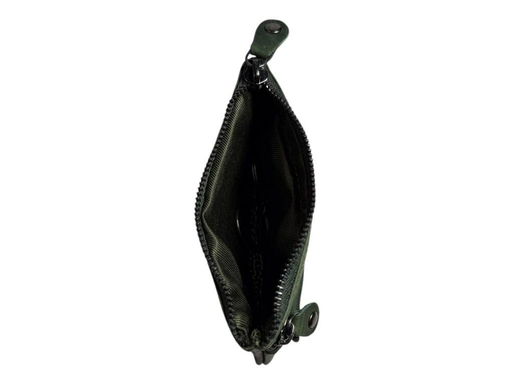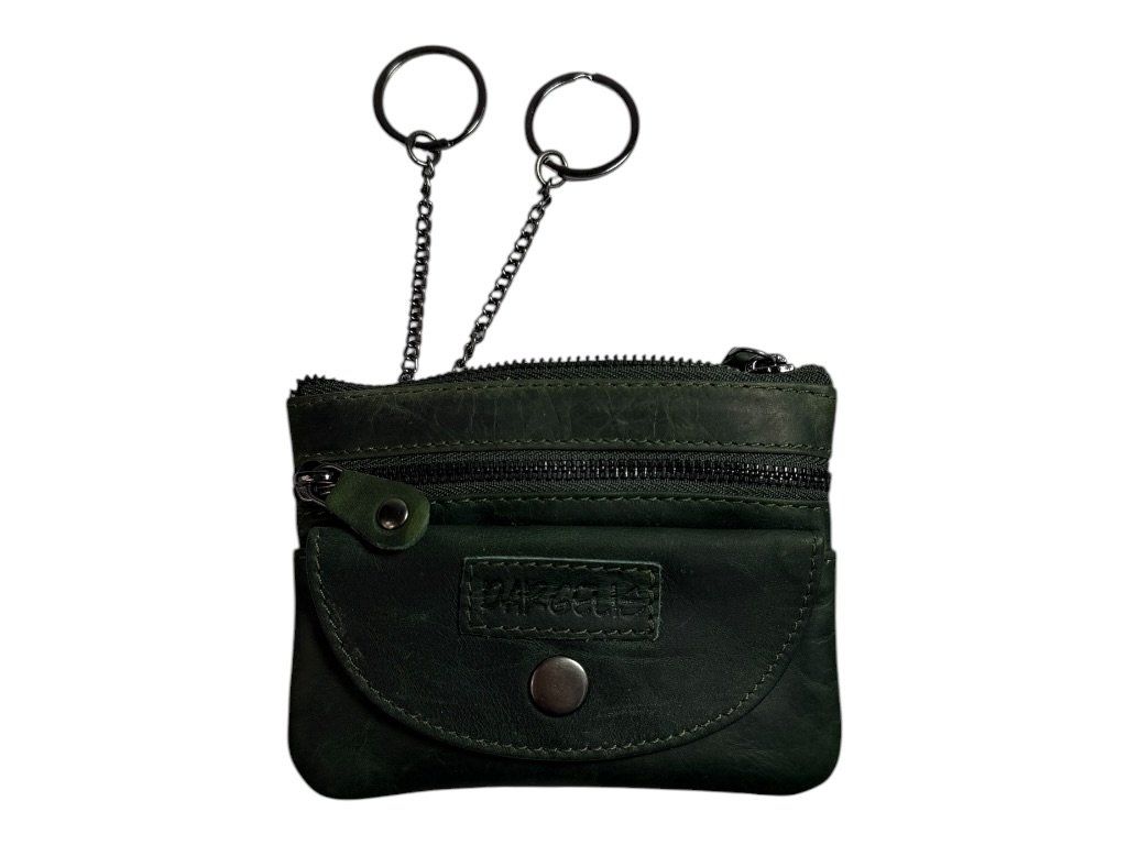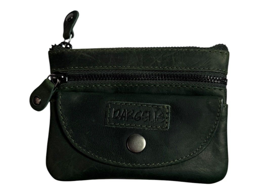 Kožené pouzdro na klíče Dargelis v zelené barvě nabízí praktické uložení díky dvěma kroužkům na klíče a kombinaci zipu a přední kapsy na patent. Ideální pro každodenní organizaci drobností.
