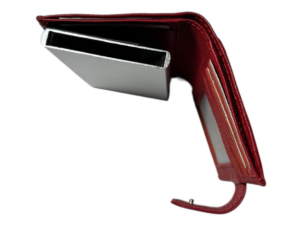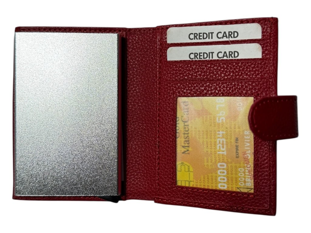 Kvalitní hnědá kůže s jemnou strukturou doplněná o hliníkové pouzdro chrání vaše karty před ohnutím i zneužitím díky RFID ochraně.