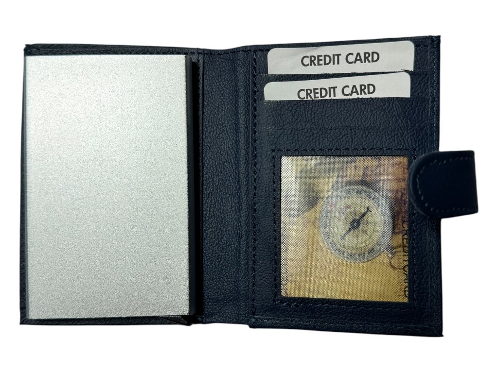 Kvalitní hnědá kůže s jemnou strukturou doplněná o hliníkové pouzdro chrání vaše karty před ohnutím i zneužitím díky RFID ochraně.