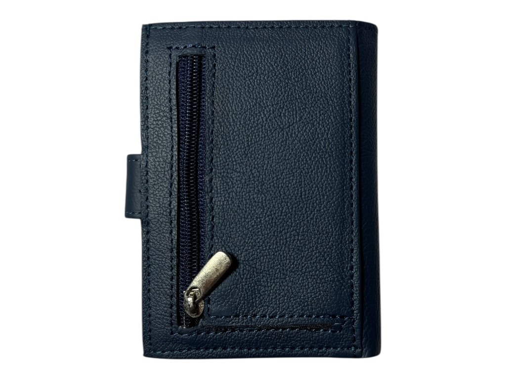 Peněženka nabízí 4 přihrádky na karty, jednu zasouvací kapsu, přihrádku na bankovky a zadní kapsu na zip pro drobnosti nebo mince.