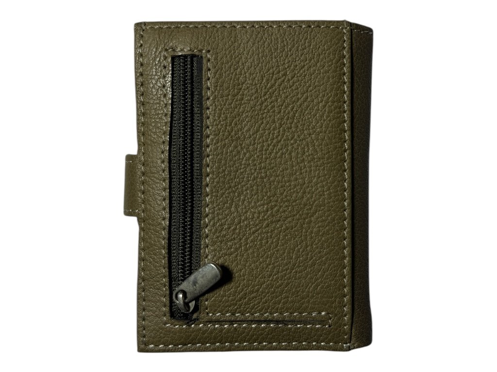Peněženka nabízí 4 přihrádky na karty, jednu zasouvací kapsu, přihrádku na bankovky a zadní kapsu na zip pro drobnosti nebo mince.