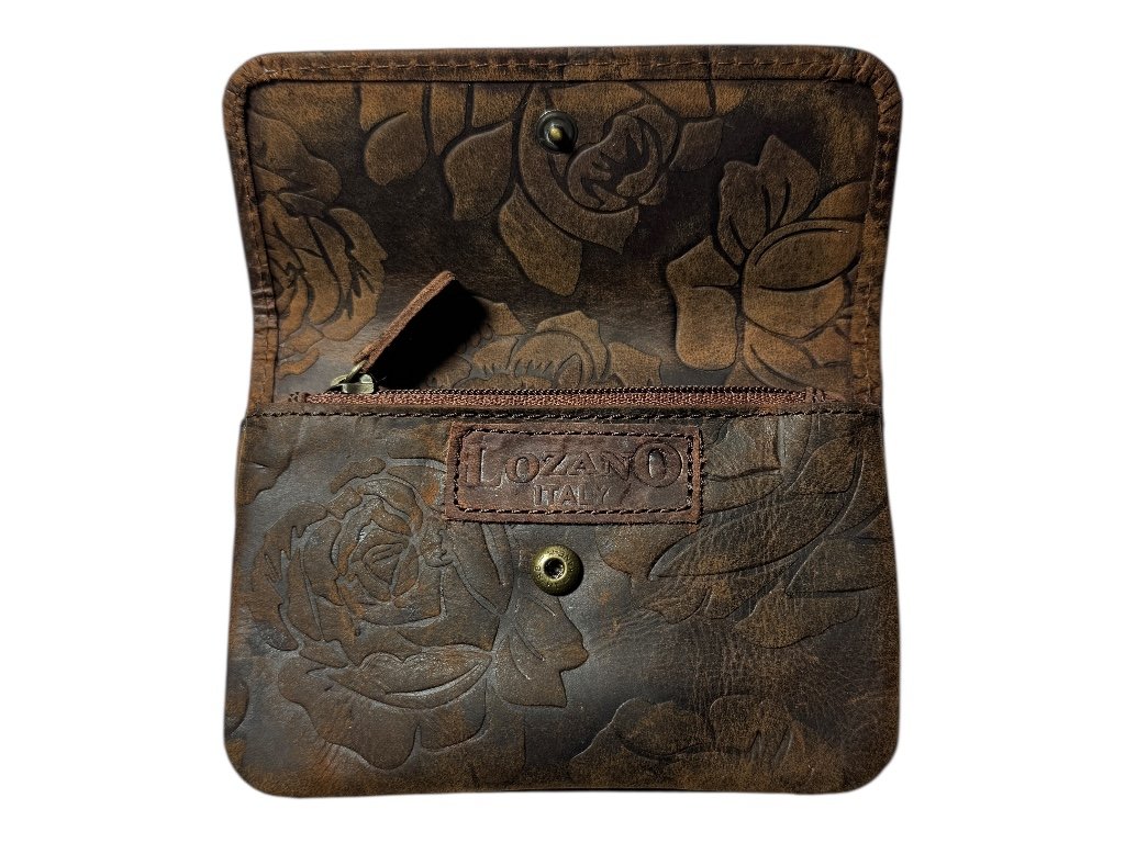 Tato malá kožená peněženka s krásným reliéfním zdobením je ideální pro ženy, které chtějí stylový, praktický a přehledný doplněk. Je vyrobena z kvalitní měkké kůže, která je příjemná na dotek a zaručuje dlouhou životnost.